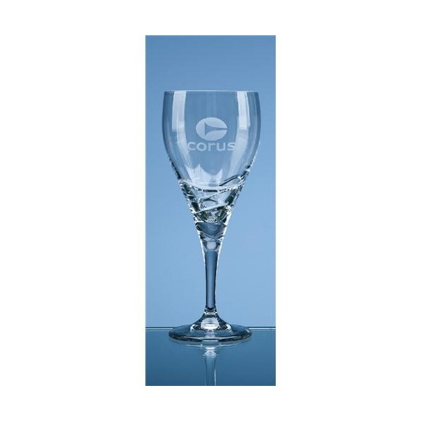 The lead crystal Verona goblet is elegant in design and modern in appearance with a contemporary wave pattern cut around the side of the goblet. Despite the cutting there is still plenty of room to personalise the goblet with any crest, logo or wording.